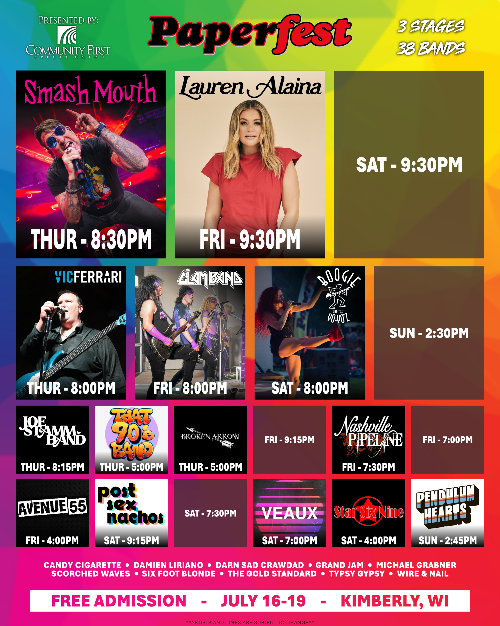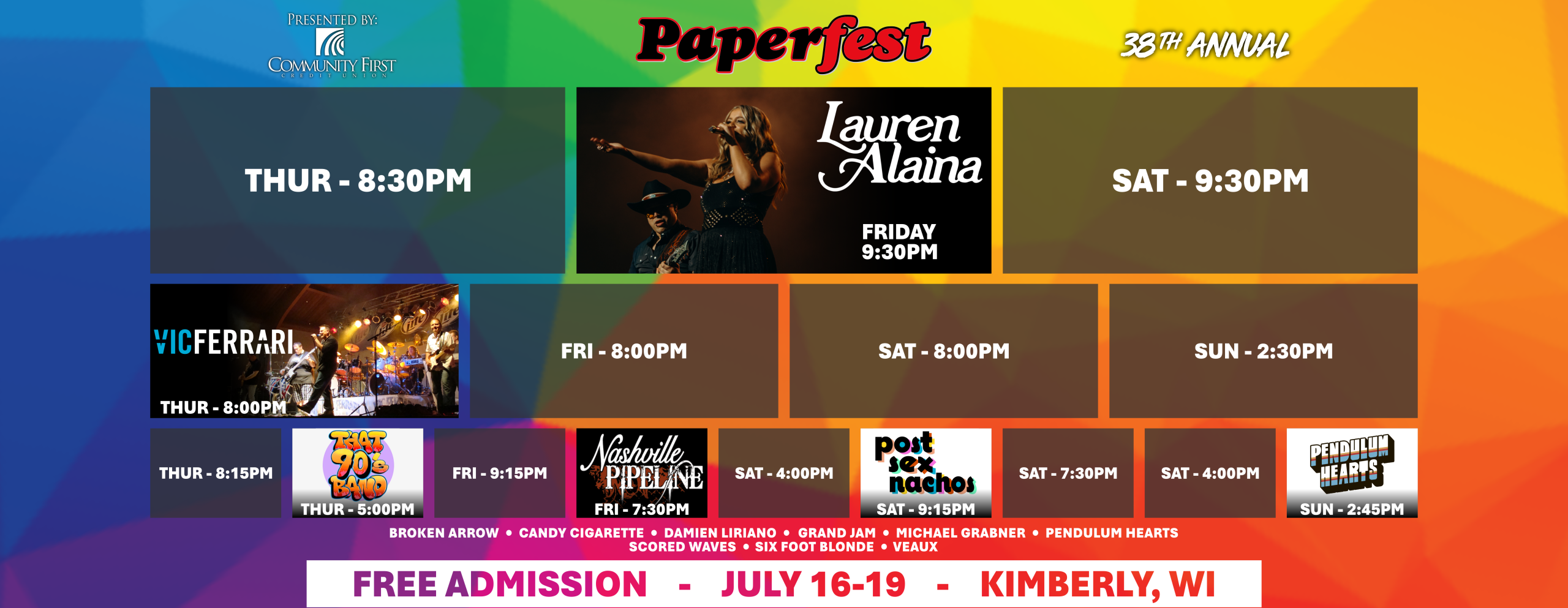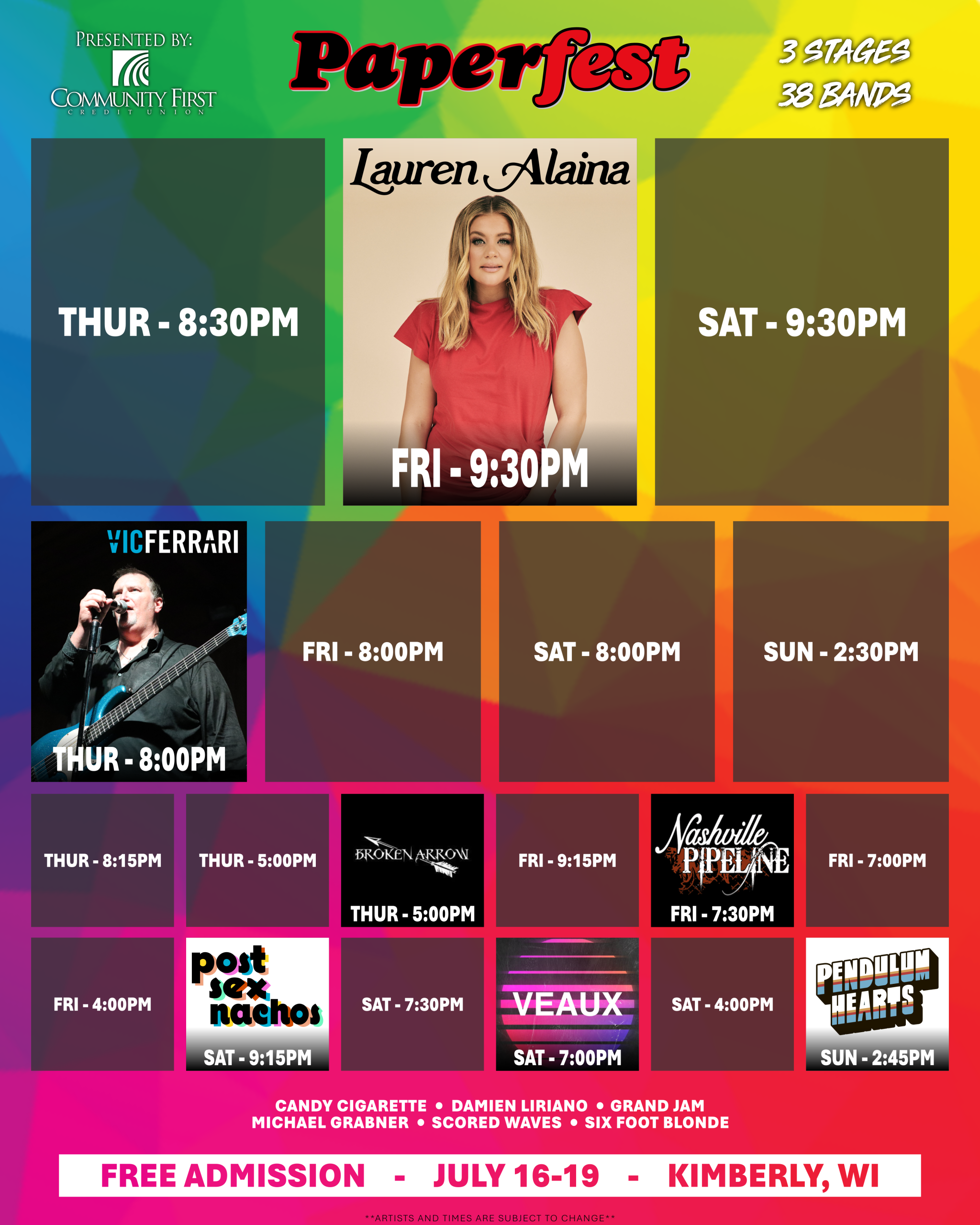Paperfest presented by Community First Credit Union is an all ages, free-admission event where food and beverage sales support local charitable organizations. Run entirely by volunteers – volunteers are able to donate their hours to a nonprofit of choice and the proceeds are donated following the event. Free parking is available around the event grounds as well as a free shuttle bus from JRG Middle School & Antique Up. The live music schedule is structured to utilize numerous stages and limit down time – there is always something to listen to!